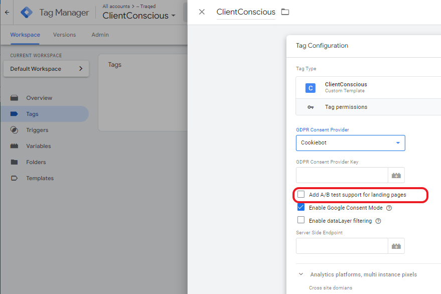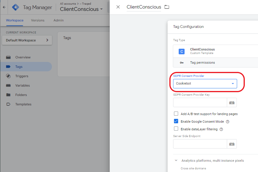 Addind a Consent Management Platform (CMP) is crucial within the EU to adhere to GDPR regulations. While it might be cumbersome in some cases to install one through the regular means of GTM, the process is pretty much stratforward with the ClientConscious tag, which provides a two-step way to perform this action.